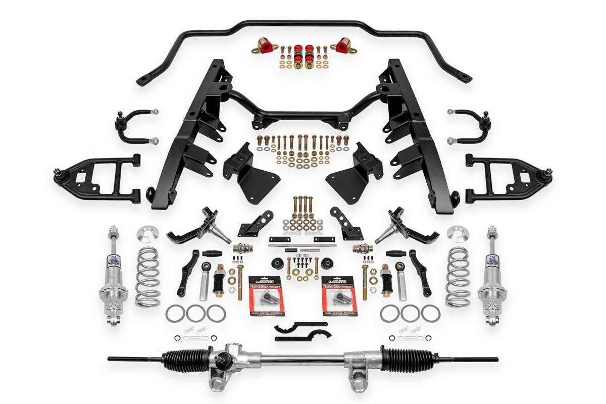 Our Independent Front Suspension (IFS) systems for your MOPAR A-, B- and E-Body vehicles are designed to provide exceptional control, stability, handling, safety and performance, bringing your Mopar muscle car into the new millennium. Designed in-house on the most advanced SolidWorks CAD systems, our IFS systems are eager performers that release unsprung weight while increasing the torsional rigidity of the front end. Lighter, stronger and more precise than the stock suspension, these systems are as much at home on the road as they are on the strip, autocross or road race courses. This is one complete, true bolt-in package. Aftermarket oil pans are required.